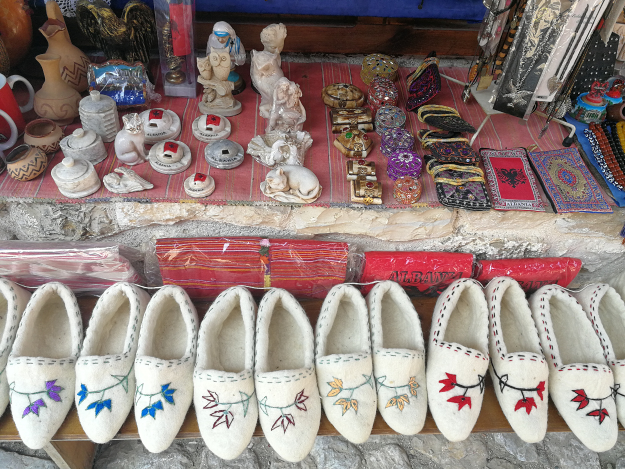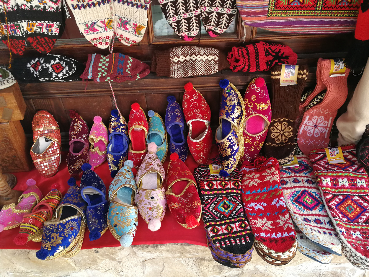 Chincaglierie da turisti, per lo più; ma anche cimeli del periodo della dittatura, cesti in vimini, brocche in rame e lavorazioni in legno, abiti tradizionali e tappeti. In qualche bottega si può anche vedere il telaio ancora funzionante dove signore non più giovanissime intrecciano i fili e fanno prender forma ai tappeti.