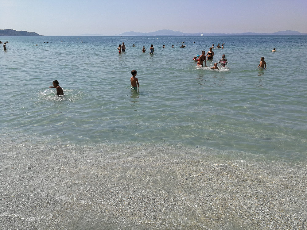Il mare però è davvero molto bello: l’acqua è limpida e il fondale degrada lentamente, il che lo rende adatto ai bambini. Anche il panorama merita lo sforzo di condividere spazi un po’ strettini con i vicini. Il tramonto, soprattutto, è impagabile!