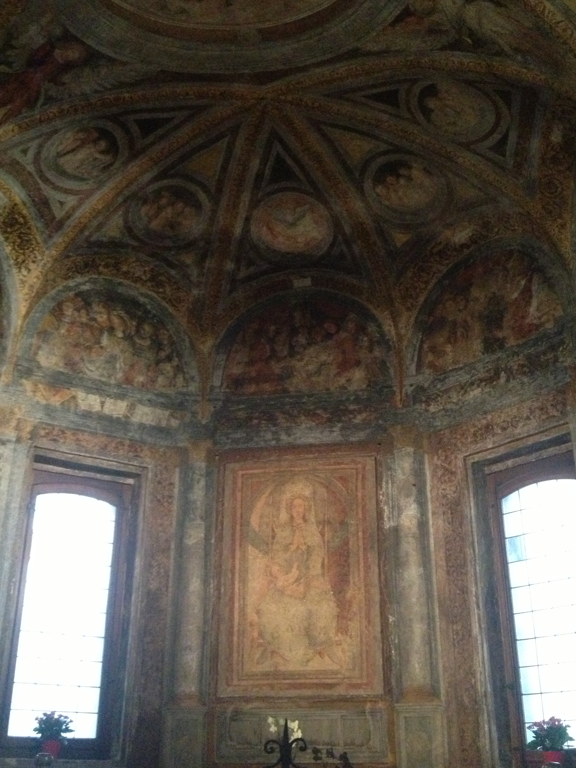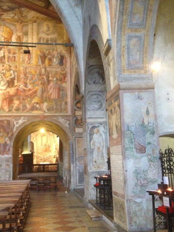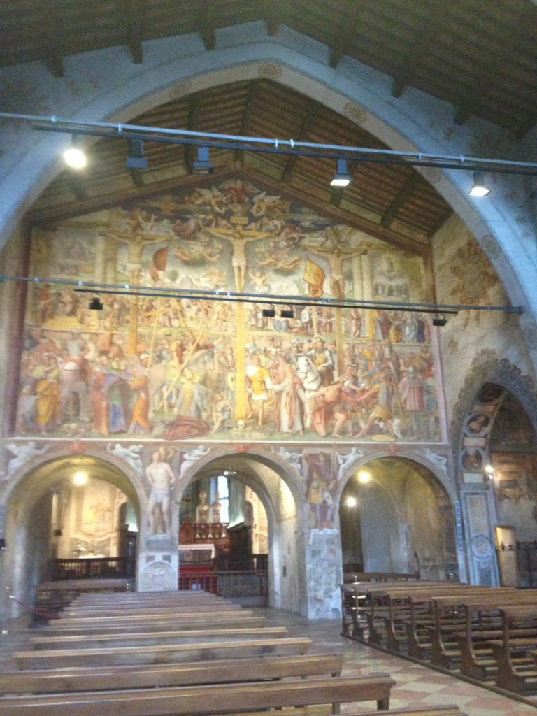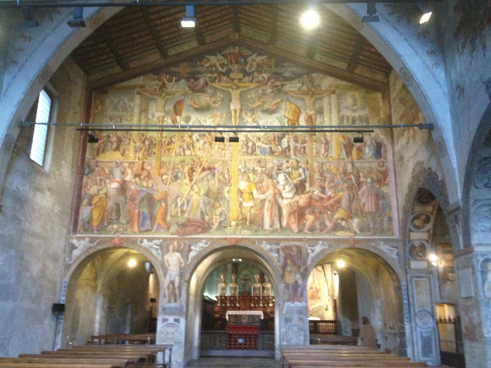 Entriamo quasi distrattamente – confessiamo che non conoscevamo questo gioiello – ma appena aperta la porta rimaniamo meravigliati di fronte a quello che, scopriremo, è il più grande ed importante affresco rinascimentale di tutta la Svizzera: La Passione e Crocifissione di Cristo di Bernardino Luini, del 1529.
