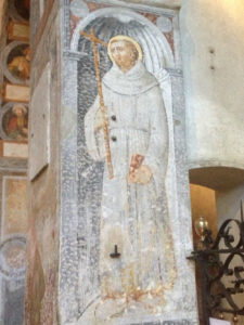 La Chiesa venne costruita tra il 1499 e il 1500, in un’unica navata centrale, con quattro piccole cappelle laterali, anch’esse affrescate. Il corpo formava un tutt’uno con l’adiacente convento, di cui oggi rimangono solo poche tracce, a causa delle  notevoli modifiche subite nel corso dei secoli.