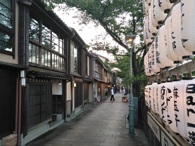 Il più famoso quartiere tradizionale si chiama Higashichaya e questo distretto è situato vicino al fiume Asano nella parte est di Kanazawa. L’ ambientazione è bellissima con le cassette in legno basse e le finestre protette da asticciole che ne impediscono la veduta all’interno. La bellezza della via è nella pavimentazione in pietra e nelle pareti in legno che delimitano l’ingresso dei piccoli edifici, oltre i quali si intravedono dei piccoli giardini interni.