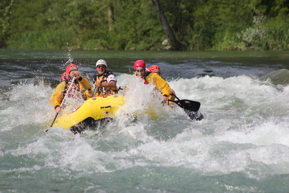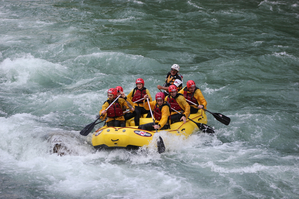 La prospettiva sulle montagne viste dal fiume è davvero unica. I 14 chilometri di discesa si sviluppano tra rapide, salti, bagni e tuffi forzati nell’acqua, ma anche momenti di relax sulle acque divenute improvvisamente tranquille e veri e propri spazi di contemplazione del panorama.