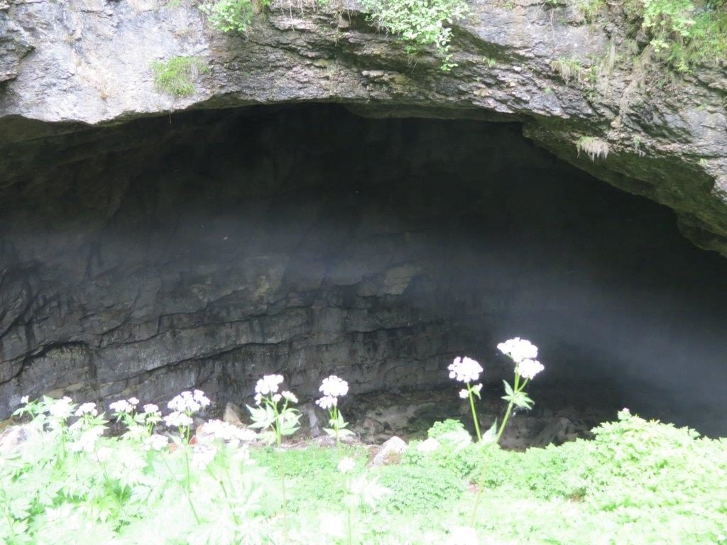 Per ragioni di sicurezza non è possibile addentrarsi all’interno, ma una visita fino alla sua imboccatura è altamente consigliata. Si dice, ma non vi è traccia certa di questo, che Dante la visitò e ne trasse spunto per immaginare il suo inferno. Per le leggende popolari narrate durante i filò, la grotta è abitata tuttora da fate e folletti. Di sicuro è curioso (e non difficile da notare) il fenomeno atmosferico di inversione termica: d’estate, quando fuori è caldo, all’interno della grotta si formano strati di nuvole che spesso provocano anche delle nevicate. Questo fenomeno ha spesso fatto sì che gli abitanti del posto abbiano da sempre utilizzato la grotta come ghiacciaia o frigorifero naturale.
