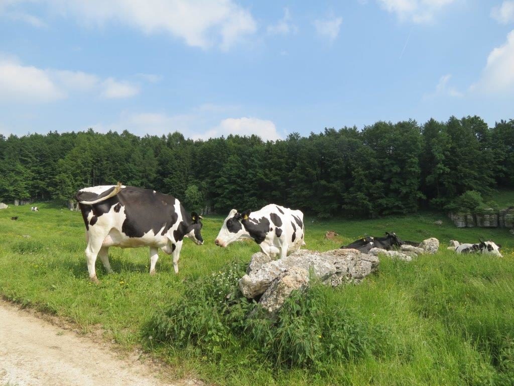 Passeggiando tra l’erba vi capiterà di avere molta compagnia: infatti a metà del sentiero si trova una malga con la stalla e le mucche pascolano paciose ed indisturbate.