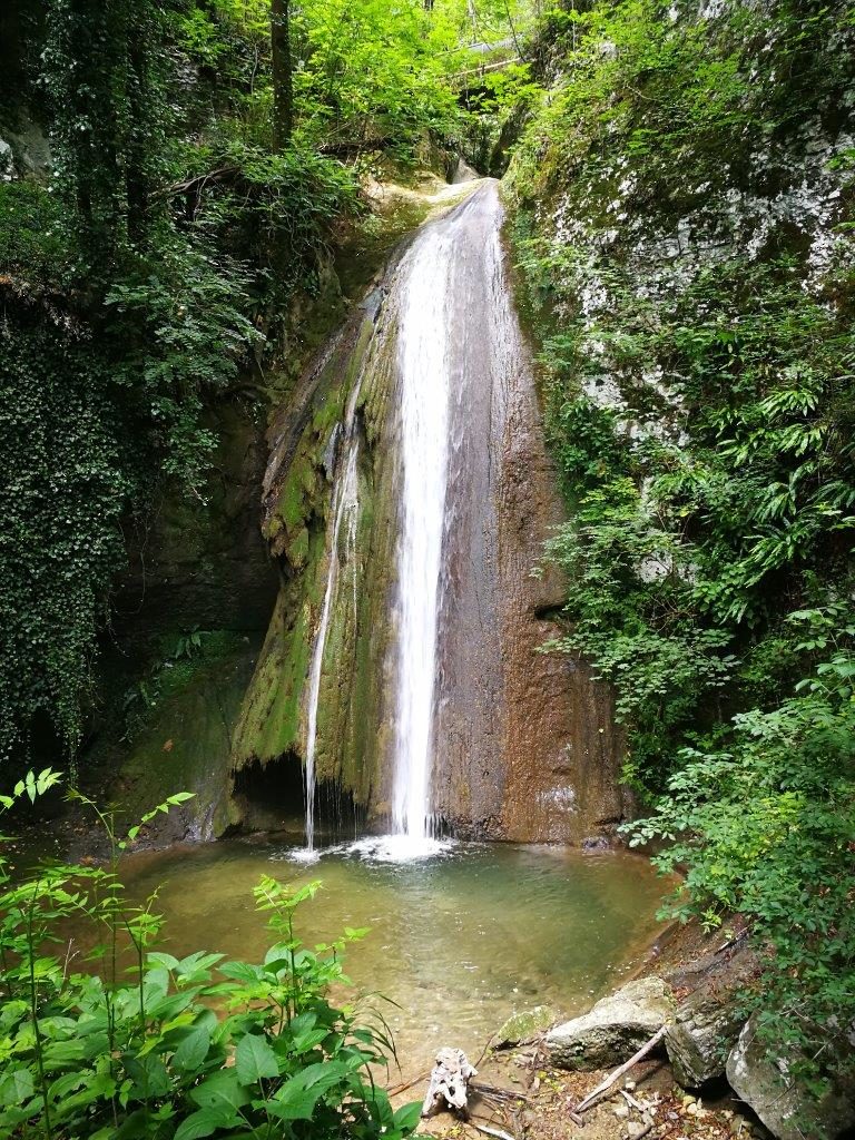 Da qui il sentiero nel bosco è un susseguirsi di cascate più o meno alte, perfettamente incastrate tra il fresco e il verde della vegetazione rigogliosissima.